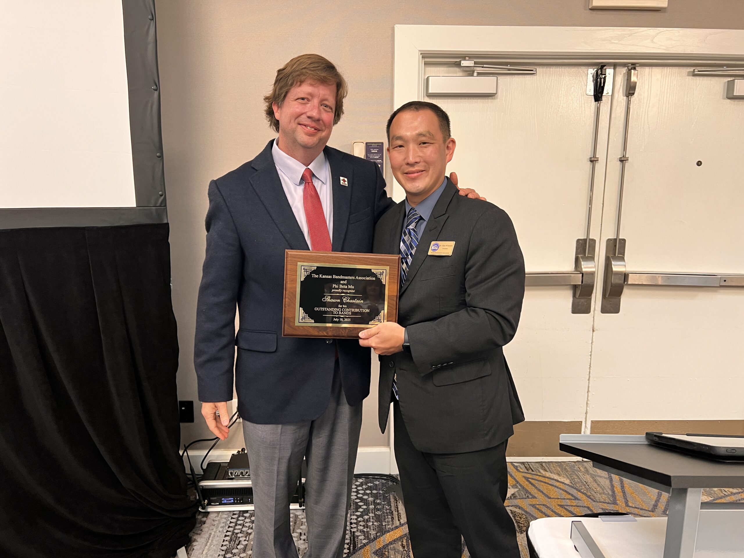 Each year the Kansas Bandmasters Association recognizes the Outstanding Bandmaster, Outstanding Young Bandmaster, and Outstanding Contributor to honor the musical accomplishments, the service to bands, and the excellence in teaching.